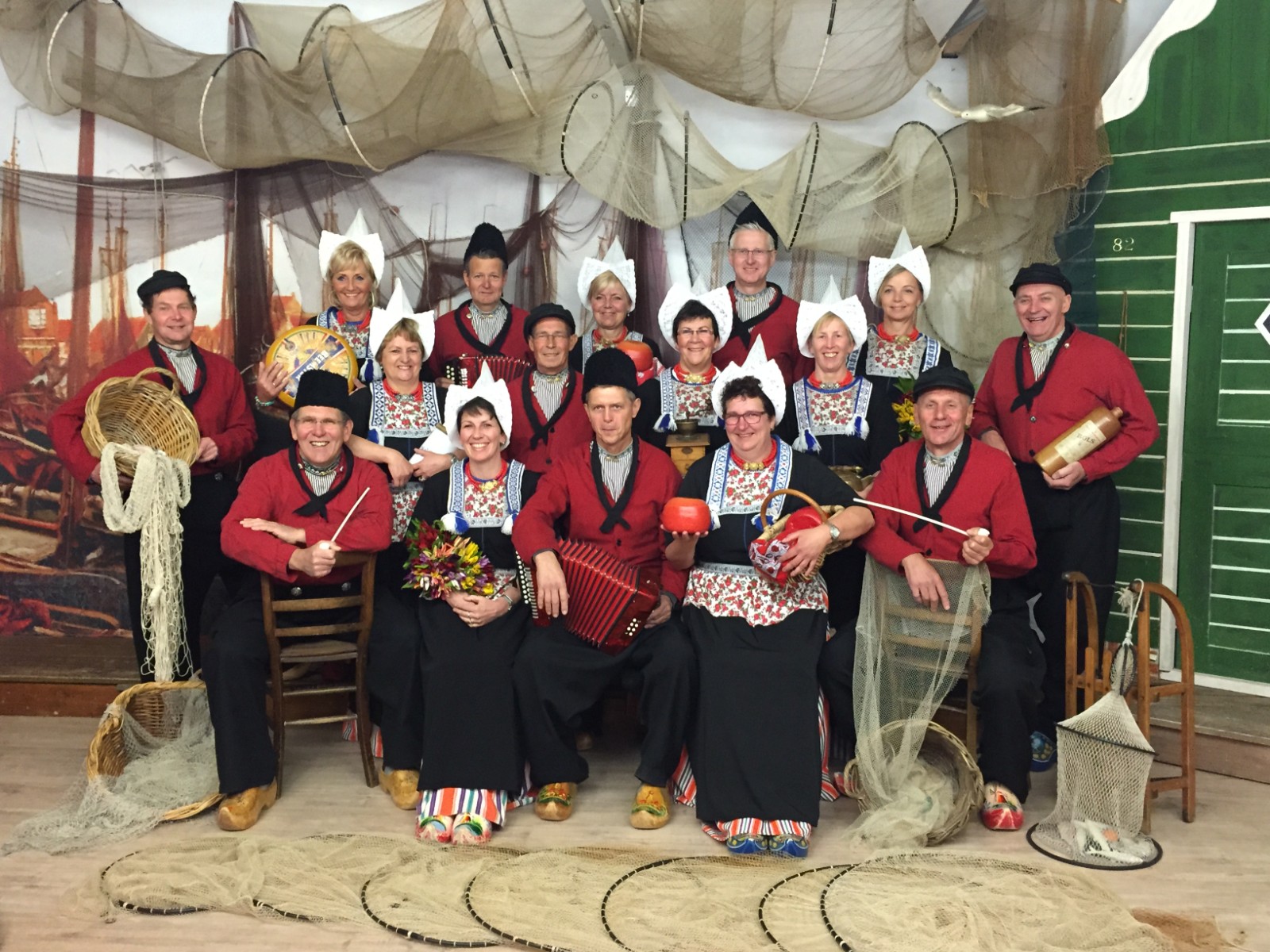 Tijdens je bezoek aan Volendam mag een foto in traditionele klederdracht natuurlijk niet ontbreken. Bij aankomst in onze sfeervolle fotostudio begint het feest al meteen: tijd om je om te kleden! Dit zorgt altijd voor een hoop plezier en hilarische momenten. Want zeg nu zelf: hoe vaak zie je je familie, vrienden of collega’s in een authentieke Volendamse outfit? Zodra iedereen zijn kostuum en klompen aan heeft, zet onze fotograaf jullie in een mooie opstelling. Hierbij wordt niets aan het toeval overgelaten, zodat iedereen er stralend op staat. En als kers op de taart krijg je enkele bijzondere accessoires in handen, zoals een mand met vis, een grote ronde kaas of een antieke koffiemolen. Kun je het al voor je zien? Na de fotosessie ontvang je per groep een grote foto als aandenken. Bovendien krijgt elke deelnemer een kleine foto mee naar huis. Alle foto’s worden daarnaast digitaal aangeleverd via een USB-stick of QR-code. Zo kun je deze unieke herinnering eenvoudig delen met vrienden en familie.