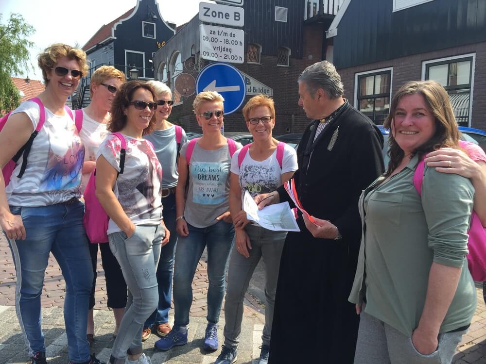 Tijdens de rondleiding ontdek je niet alleen de leukste bezienswaardigheden. Maar je verkent ook de 'geheime' straatjes en pleintjes, waar andere toeristen niet komen. Volendam is een bezoek meer dan waard. Volendam was voor de bouw van de Afsluitdijk een écht vissersdorp. Dat zie bijvoorbeeld aan de visafslag, die precies in het midden van de haven staat. En ook de Klokkenpaal speelde in die tijd een belangrijke rol. Wanneer de vissers terugkwamen van zee, werd deze bel geluid en werd vervolgens de vis verkocht. Onderaan de dijk vind je de kleine vissershuisjes in het oudste woonwijkje van Volendam, het Doolhof. En vlak daarbij vind je de indrukwekkende Vincentius Kerk. De Volendammers bouwden deze kerk uit eigen middelen. Wisten jullie dat Volendam het enige katholieke dorp in de omgeving is? Ja inderdaad: Volendammers waren toen al een beetje dwars. Onze gidsen zijn allemaal geboren en getogen in Volendam. Dat biedt natuurlijk veel voordelen. De gids kent niet alleen boeiende verhalen over het vissersleven, maar vertelt ook graag over de successen van de Volendamse Palingsound of de FC Volendam. Zo krijg je als deelnemer niet alleen een goed beeld van wat er vroeger speelde, maar ook van wat er tegenwoordig speelt.