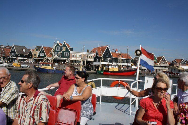 Jullie gaan aan boord voor een bezoek aan het voormalig eiland Marken. Daar kunnen jullie op eigen gelegenheid het schilderachtige Marken bekijken. Marken staat bekend om zijn oude vissershaven, smalle straatjes en huizen op palen. Onderweg is het genieten van de frisse zeewind en het prachtige uitzicht op de havens van Marken en Volendam.
