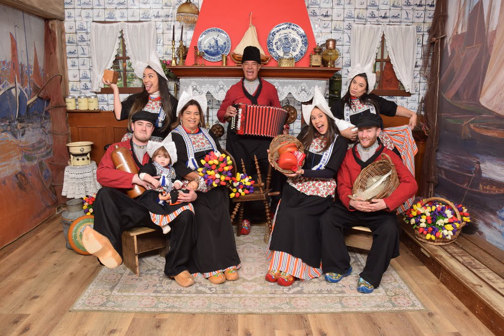 Tijdens je bezoek aan Volendam mag een foto in traditionele klederdracht natuurlijk niet ontbreken. Bij aankomst in onze sfeervolle fotostudio begint het feest al meteen: tijd om je om te kleden! Dit zorgt altijd voor een hoop plezier en hilarische momenten. Want zeg nu zelf: hoe vaak zie je je familie, vrienden of collega’s in een authentieke Volendamse outfit? Zodra iedereen zijn kostuum en klompen aan heeft, zet onze fotograaf jullie in een mooie opstelling. Hierbij wordt niets aan het toeval overgelaten, zodat iedereen er stralend op staat. En als kers op de taart krijg je enkele bijzondere accessoires in handen, zoals een mand met vis, een grote ronde kaas of een antieke koffiemolen. Kun je het al voor je zien? Na de fotosessie ontvang je per groep een grote foto als aandenken. Bovendien krijgt elke deelnemer een kleine foto mee naar huis. Alle foto’s worden daarnaast digitaal aangeleverd via een USB-stick of QR-code. Zo kun je deze unieke herinnering eenvoudig delen met vrienden en familie.